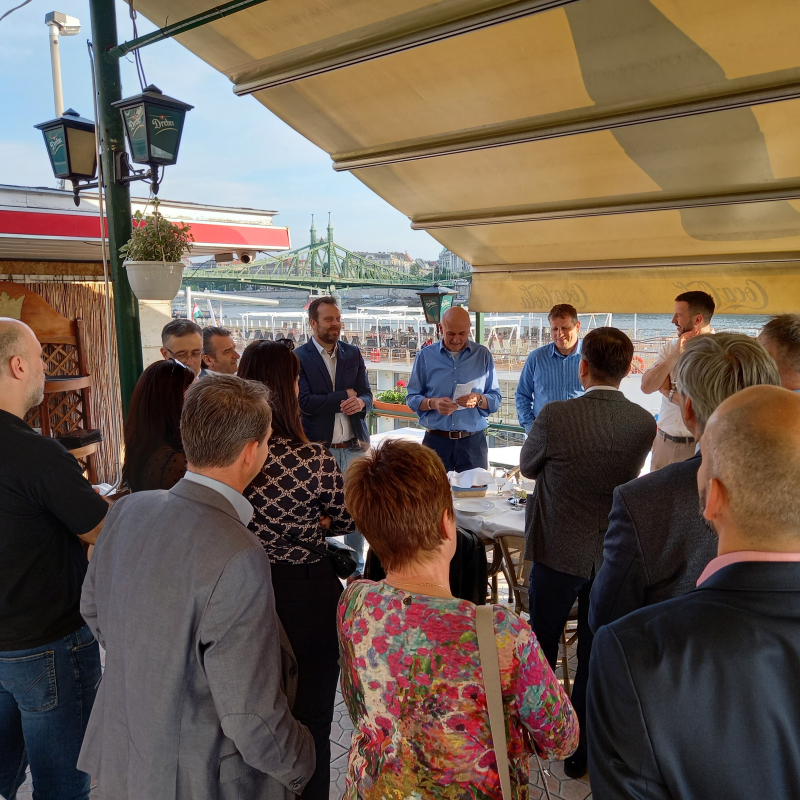 A HWP elnöksége, a tagvállalatok, valamint a stratégiai partnerek vezetői és képviselői kötetlen hangulatú találkozón vettek részt a budapesti Duna-parton. -