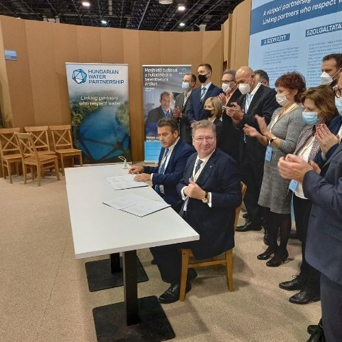 Új együttműködő szervezettel bővült a HWP hazai partneri hálózata, miután a Planet Budapest 2021 Fenntarthatósági Expó során megállapodást írtunk alá a Magyar Kereskedelmi és Iparkamarával. A dokumentum értelmében kölcsönösen támogatjuk a magyar vízügyi termékek és szolgáltatások külföldi értékesítését.