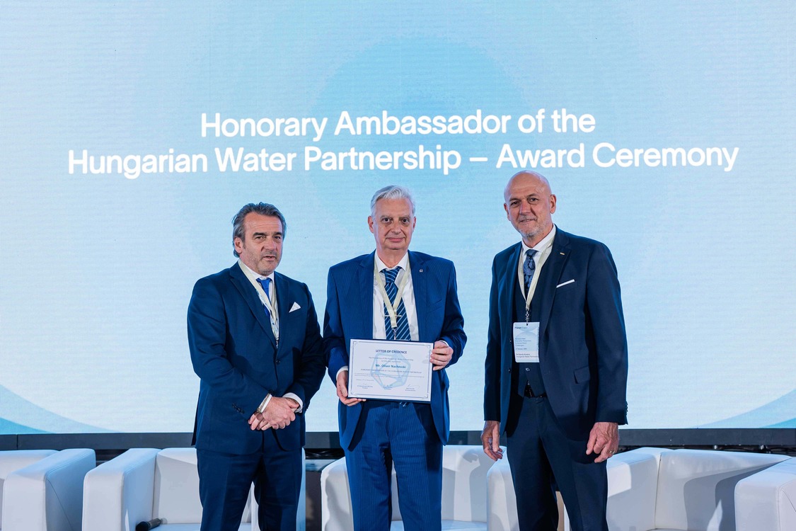 The honorary title was presented in Budapest by Dr. Károly Kovács, President of the Hungarian Water Partnership, together with Róbert Forintos, Co-President of HWP.