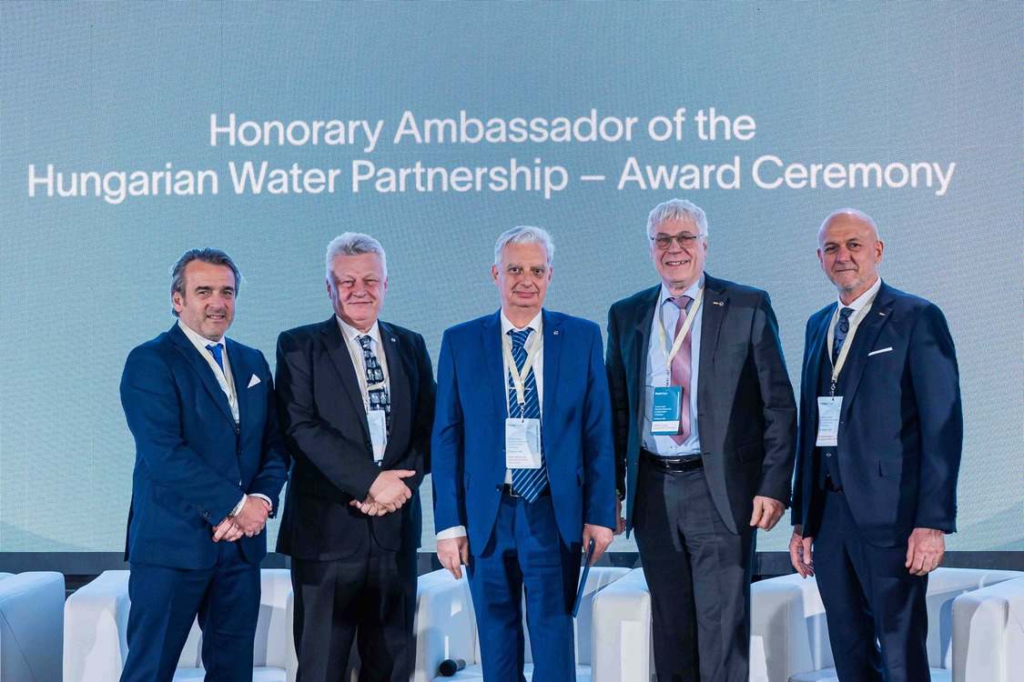 From left to right: Robert Forintos - Co-President of the Hungarian Water Partnership, Honorary Ambassadors: Péter Kovács, Oliver Nachevski and Johannes Lohaus, and Dr. Károly Kovács President of the Hungarian Water Partnership