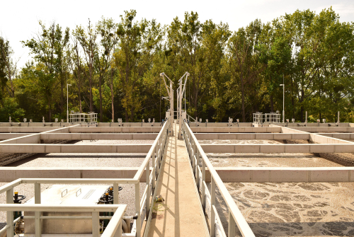 Industrial wastewater treatment plant at Dreher Brewery in Budapest. -